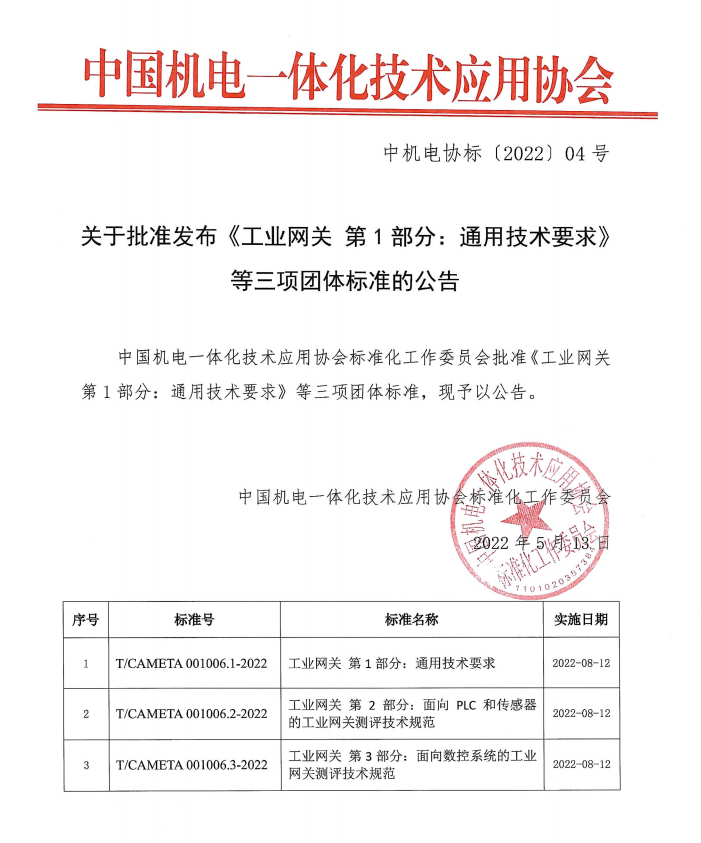 2022年5月13日,QT钱包官网智通核心参编的工业网关标准,已正式顺利获得审批!将于2022年8月12日正式实施!