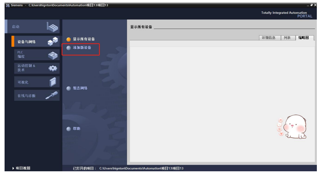2.打开博图软件,新建项目、添加设备,找到对应设备系列、型号、版本等,添加。