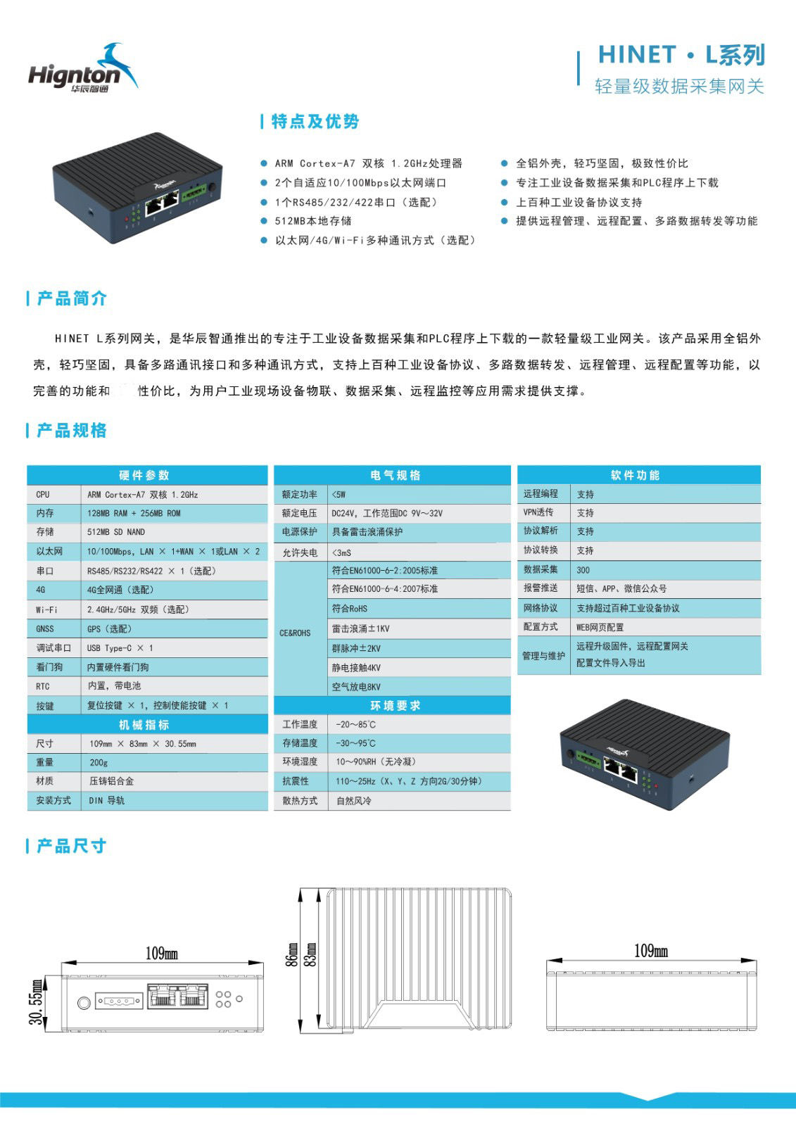 HINET L系列网关,是QT钱包官网智通推出的专注于工业设备数据采集和PLC程序上下载的一款轻量级工业网关。该产品采用全铝外 壳,轻巧坚固,具备多路通讯接口和多种通讯方式,支持上百种工业设备协议、多路数据转发、远程管理、远程配置等功能,以 完善的功能和性价比,为用户工业现场设备物联、数据采集、远程监控等应用需求给予支撑。